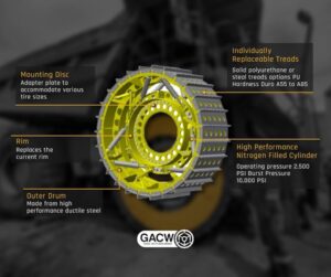 GACW ha stimato che, nei contesti operativi più impegnativi, i veicoli pesanti devono sostituire gli pneumatici ogni 6-9 mesi. Questo porta a costi elevatissimi: per un dumper da miniera (parliamo di mezzi lunghi 20 metri e alti 8, che possono costare anche mezzo milione di dollari) l’intera vita utile può generare spese per 7 milioni di dollari al cambio 6 milioni circa di euro solo per le gomme.