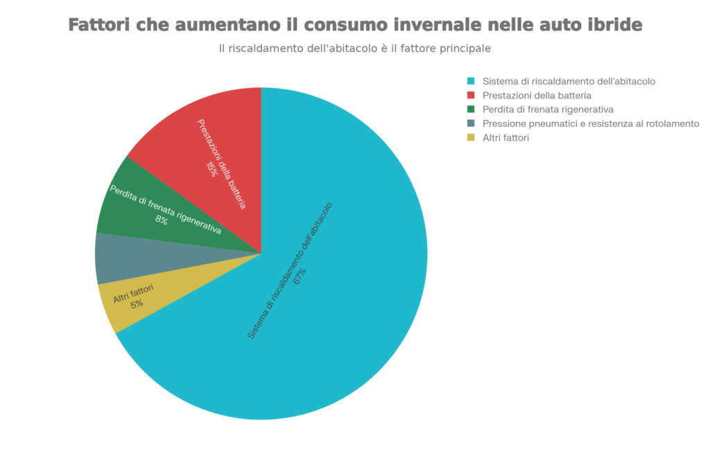 Ma il freddo non colpisce solo la batteria. È il riscaldamento dell’abitacolo il fattore più impattante, pari a circa i due terzi dell’aumento del consumo di carburante.