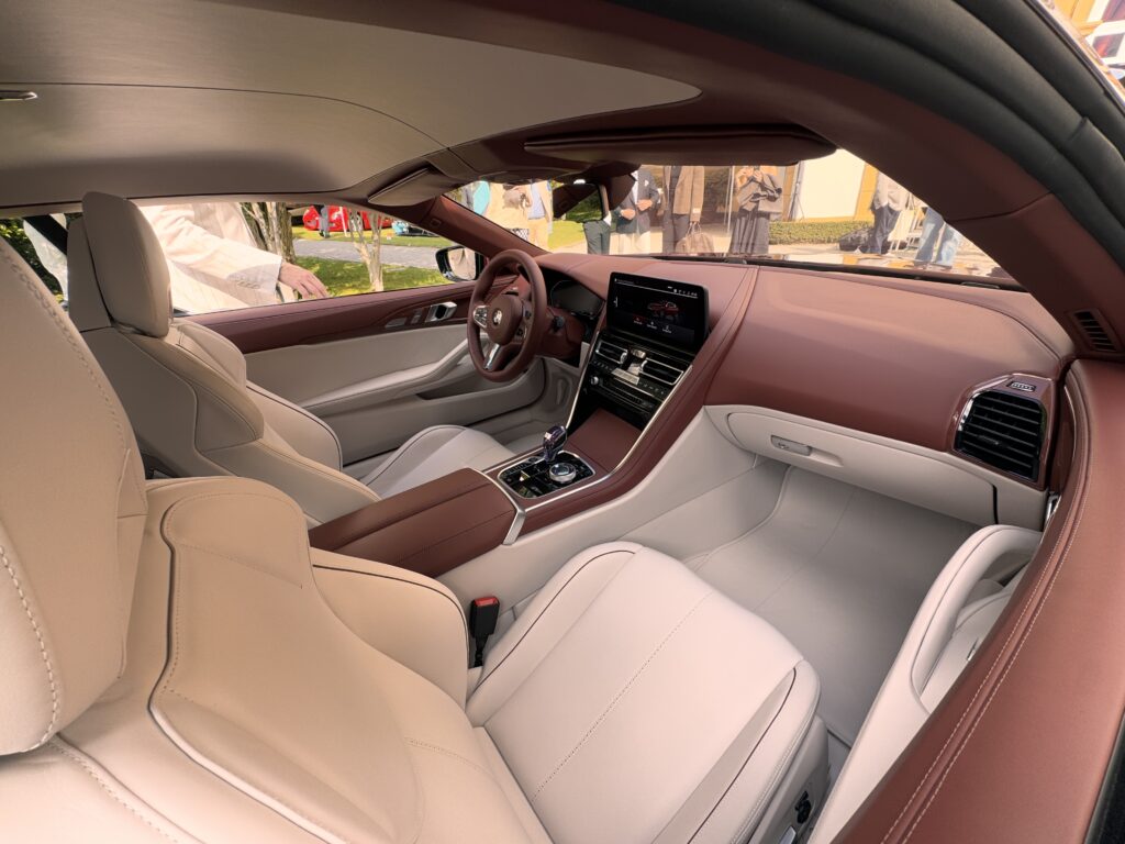 Il tema di di colore e materiale a due tonalità va a creare una connessione tra carrozzeria e abitacolo. Il tono marrone scintillante della vernice esterna Floating Sunstone Maroon viene ripreso all’interno, dove il “Sundown Maroon” si armonizza con il chiaro “Moonstone White” dei sedili. Anche il bagagliaio è rivestito in pelle e diviso in due sezioni.