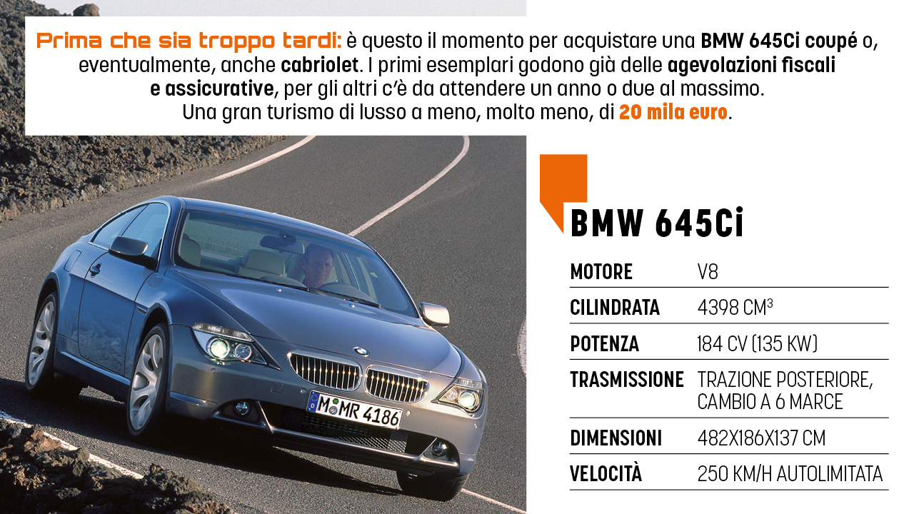 Nell’ottobre del 2003, la BMW svelava la nuova Serie 6 (codice di progetto E63), una coupé elegante che avrebbe ridefinito il concetto stesso di vettura gran turismo. Il modello di punta (M6 esclusa), la 645Ci, dominava il segmento delle grandi coupé con un equilibrio perfetto tra sportività e lusso. La Serie 6 Coupé si caratterizzava per le linee dinamiche e un’estetica sicuramente originale, ma anche piuttosto controversa all’epoca, figlia della matita di Chris Bangle. La 645Ci, con il suo motore V8 da 4,4 litri Euro 4, che poteva anche essere accoppiato a un cambio manuale a sei marce, offriva prestazioni assai elevate e una qualità di guida senza pari.