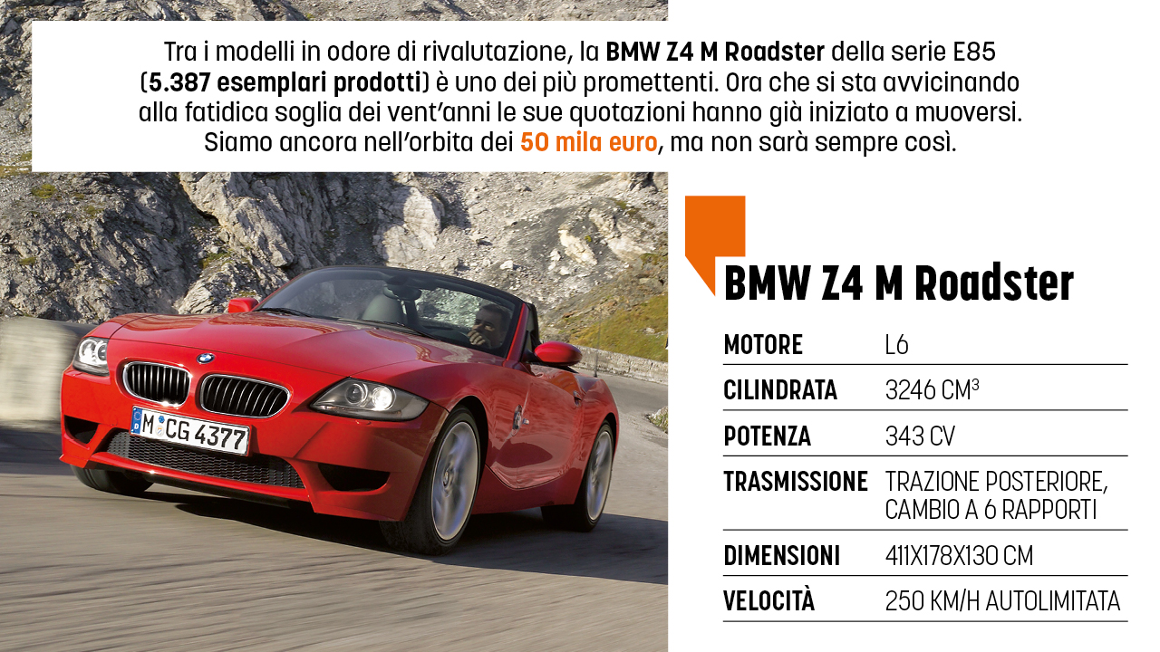 Al Salone dell’Automobile di Detroit nel gennaio del 2006 debuttava la BMW Z4 M Roadster e cioè la versione più sportiva e attesa della Z4 Roadster. Con questo modello, che si inseriva nella fascia alta delle spider BMW, la BMW perpetuava la tradizione delle roadster ad altissime prestazioni, un segmento inaugurato da BMW M nel 1997 con la Z3 M Roadster. Il cuore della Z4 M Roadster era il sei cilindri in linea S54, un motore ampiamente utilizzato sulla BMW M3 E46 che aveva ricevuto, per cinque anni consecutivi, il prestigioso riconoscimento di Engine of the Year. Questa unità propulsiva aveva una cilindrata di 3246 cm³, erogava 343 CV a 7900 giri/min, vantava una coppia massima di 365 newtonmetri a 4900 giri/min e poteva raggiungere un regime di rotazione massimo di 8.000 giri/min. La potenza specifica espressa dall’S54 era di 106 CV/litro e, grazie a un rapporto peso/potenza di 4,1 kg/CV, la Z4 M Roadster poteva accelerare da 0 a 100 km/h in 5 secondi e riprendere in quarta marcia da 80 a 120 km/h in altrettanti 5 secondi. La velocità massima, come di consueto, era limitata elettronicamente a 250 km/h.