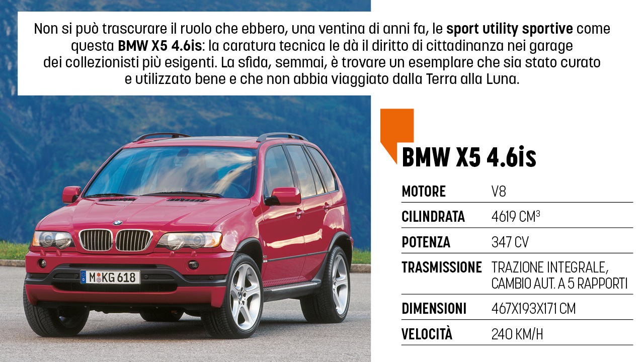 Sebbene questa nuova variante della X5 avesse un carattere decisamente più sportiveggiante delle altre versioni, manteneva intatte le medesime capacità di veicolo “all terrain”. La coppia massima era aumentata di 40 Nm rispetto al modello 4.4 e tornava utile tanto nelle pendenze esasperate quanto nell’uso come veicolo trainante. A questo si aggiungevano i consueti sistemi elettronici di controllo come il differenziale autobloccante elettronico, il Cornering Brake Control, l’antipattinamento in partenza, il Dynamic Brake Control e il controllo automatico della velocità in discesa, che assicurava una velocità costante tra 6 e 25 km/h nelle discese in fuoristrada. Tutti questi dispositivi erano integrati fra loro. Il design della X5 4.6is trasmetteva la sensazione di potenza e una certa raffinatezza senza risultare mai eccessivo. Elementi distintivi come i cerchi di 20 pollici dedicati, con pneumatici di misura differenziata, 275/40 davanti e 315/35 dietro, enfatizzavano ulteriormente la sua natura di Sport Activity Vehicle. Due anni dopo il lancio della X5 4.6is, la BMW presentava un’evoluzione con motore V8 di 4,8 litri e cambio automatico a sei rapporti, la X5 4.8is, che poteva contare su una potenza massima di 360 cavalli a 6200 giri e un valore di coppia massima pari a 490 Nm a 3600 giri.