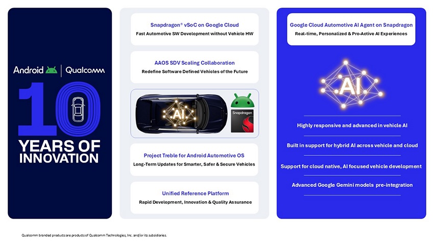 Qualcomm ha inoltre indicato una nuova fase della collaborazione con Google per semplificare l’integrazione dell’AI nei veicoli, combinando Snapdragon Digital Chassis con soluzioni software Automotive dell’ecosistema Google.