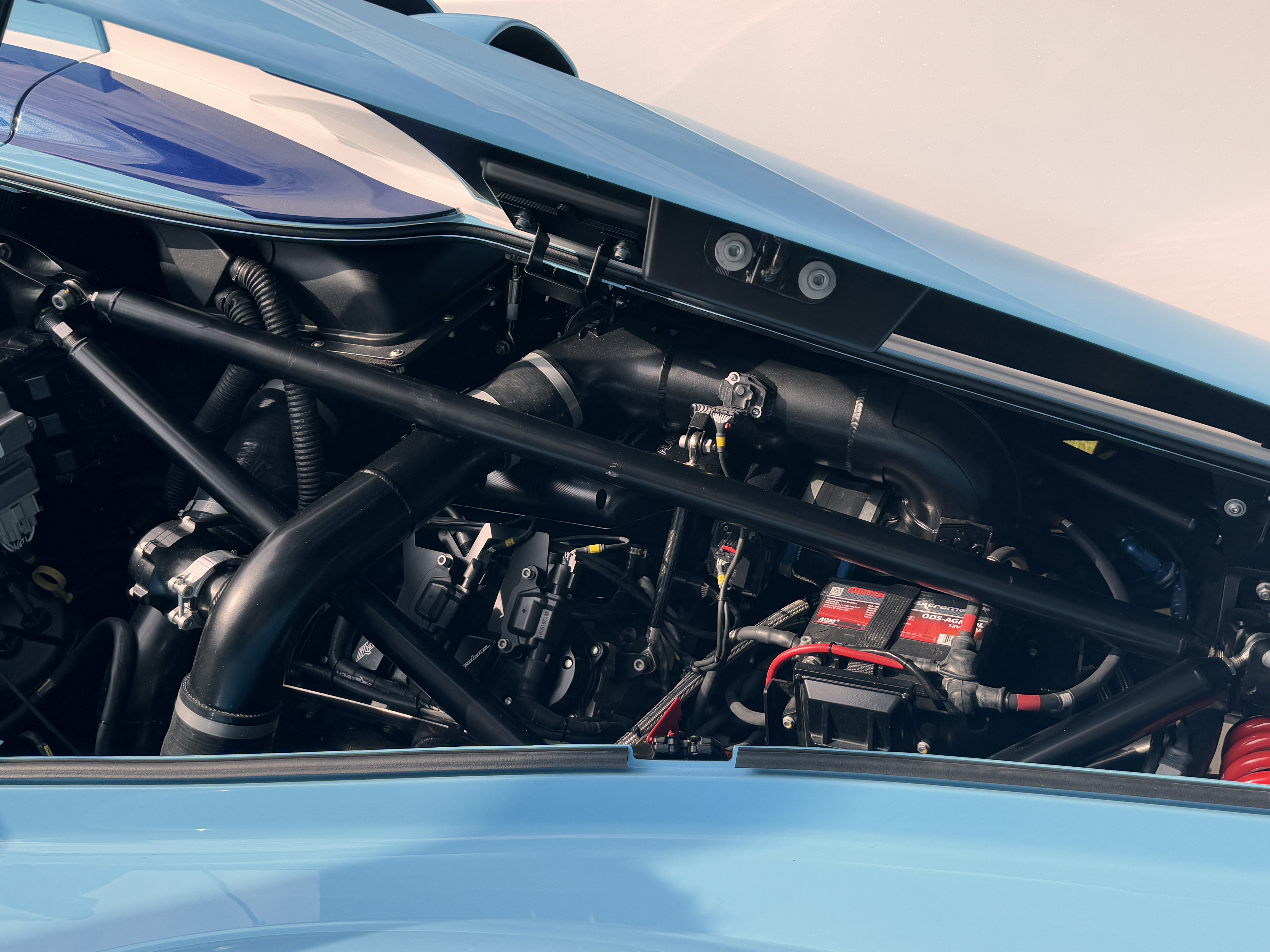 Rispetto alla vettura che ha ben figurato nel campionato Wec Hypercar, la Casa americana ha optato per un abitacolo più generoso, all’interno del quale trovano posto tre sedili. Non essendoci le restrizioni del Wec, dietro alle spalle degli occupanti un poderoso Katech V8 Bi-Turbo da 6.2 litri. La potenza è di 1.000 cv, con una coppia di 1000 Nm. Il telaio monoscocca in fibra di carbonio e diverse parti realizzate nello stesso materiale contengono il peso a 1500 kg.