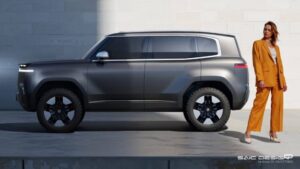 Il design della Cyber X è firmato da Shao Jingfeng, già autore della MG Cyberster. Qui, Jingfeng adotta un linguaggio formale netto e muscoloso: la carrozzeria è scolpita con linee tese, i passaruota sono ampi e squadrati, mentre il frontale e la coda presentano superfici dritte, quasi verticali, a rafforzare l’aspetto da suv votato all’off-road. L’altezza da terra accentuata e il profilo robusto sottolineano ulteriormente la vocazione avventurosa del prototipo.