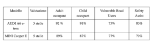 Nella prima sessione di test Euro NCAP-ACI del 2025, si sono classificate ai primi posti due auto elettriche agli estremi per segmento e costi: Mini Cooper E e l’Audi A6 e-tron hanno ottenuto il massimo rating di cinque stelle, con ottimi punteggi in ogni campo.