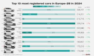“Nel complesso, se si considera la serie di sfide che l’industria automobilistica europea deve affrontare, i risultati per il 2024 non sono eccessivamente negativi”, commenta Felipe Munoz, global analyst di JATO Dynamics. “Il costo più elevato dei veicoli, l’aumento del lavoro da casa, la pressione inflazionistica sui salari e l’emergere di nuove soluzioni di trasporto sono tra le ragioni per cui gli europei hanno smesso di acquistare auto nuove”, aggiunge Munoz.