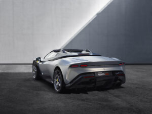 Sotto le spoglie della Ferrari F8 Spider prende forma questa inedita SP-8. Il cliente, di provenienza taiwanese, ha scelto il numero 8 perché nella cultura cinese è considerato fortunato. L’assenza del tetto è stata una richiesta tassativa che, per quanto possa rendere più affascinante il progetto, l’ha reso anche più complesso nel suo processo di sviluppo.