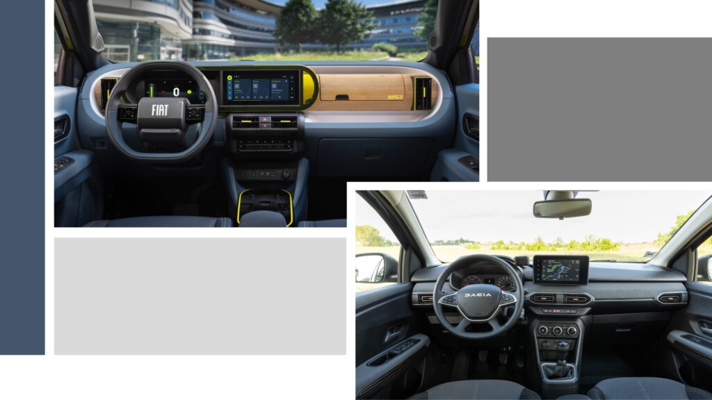 L’allestimento Icon della Panda da 20.400 euro ha di serie, oltre gli ADAS previsti per legge, la strumentazione digitale da 10”, il freno di stazionamento elettrico (EPB), il sistema multimediale con schermo da 10,25”, fari e luci posteriori con tecnologia led, sedili con configurazione 60/40, bracciolo e cerchi in acciaio Style. La Dacia Sandero Stepway in allestimento Expression da 16.900 euro prevede il Media display da 8″, il computer di bordo con schermo TFT da 3,5”, il climatizzatore manuale, gli specchietti laterali regolabili elettricamente, le luci diurne a LED con firma luminosa Y-shape e i cerchi in lega da 16″.