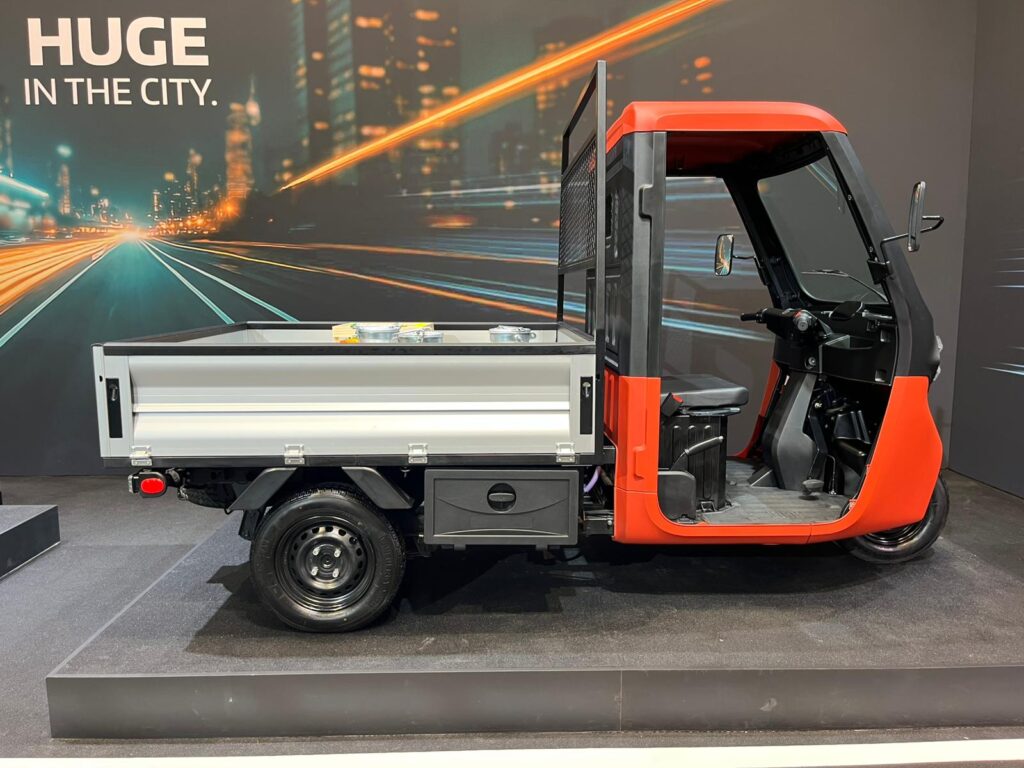 Nonostante le dimensioni ultracompatte (solo 3,17 metri di lunghezza), il Tris può trasportare un carico utile fino a 540 kg e ospitare un europallet standard nel suo vano da 2,25 metri quadrati. Il raggio di sterzata ridottissimo, pari a 3,05 metri, lo rende perfetto per districarsi nei vicoli dei centri storici.
