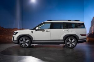 Le dimensioni generose sono messe in risalto dal suo design “boxy” che ha l’effetto di ampliare le linee del frontale e del posteriore. Lateralmente, le vetrate continue puliscono la linea resa muscolosa dai passaruota ben pronunciati. Anteriormente balza all’occhio la nuova firma luminosa ad H, ben riconoscibile quando la vedi arrivare.