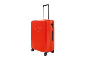 Trolley rigido da stiva con logo MINI in rilievo. Ruote doppie a 360°, cerniera bidirezionale e lucchetto TSA integrato. Misura 71×48.5×27.5 cm.