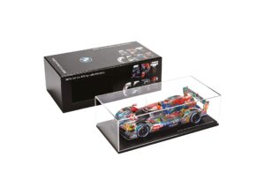 Un pezzo da collezione: modellino in scala 1:18 della BMW M Hybrid V8 con livrea Le Mans del 2024, realizzata dall’artista Julie Mehretu.