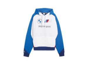 Felpa BMW Motorsport in cotone (70% cotone e 30% cotone riciclato), con vestibilità relaxed fit e cappuccio. Logo BMW M Motorsport sul petto, logo Puma sulla manica.