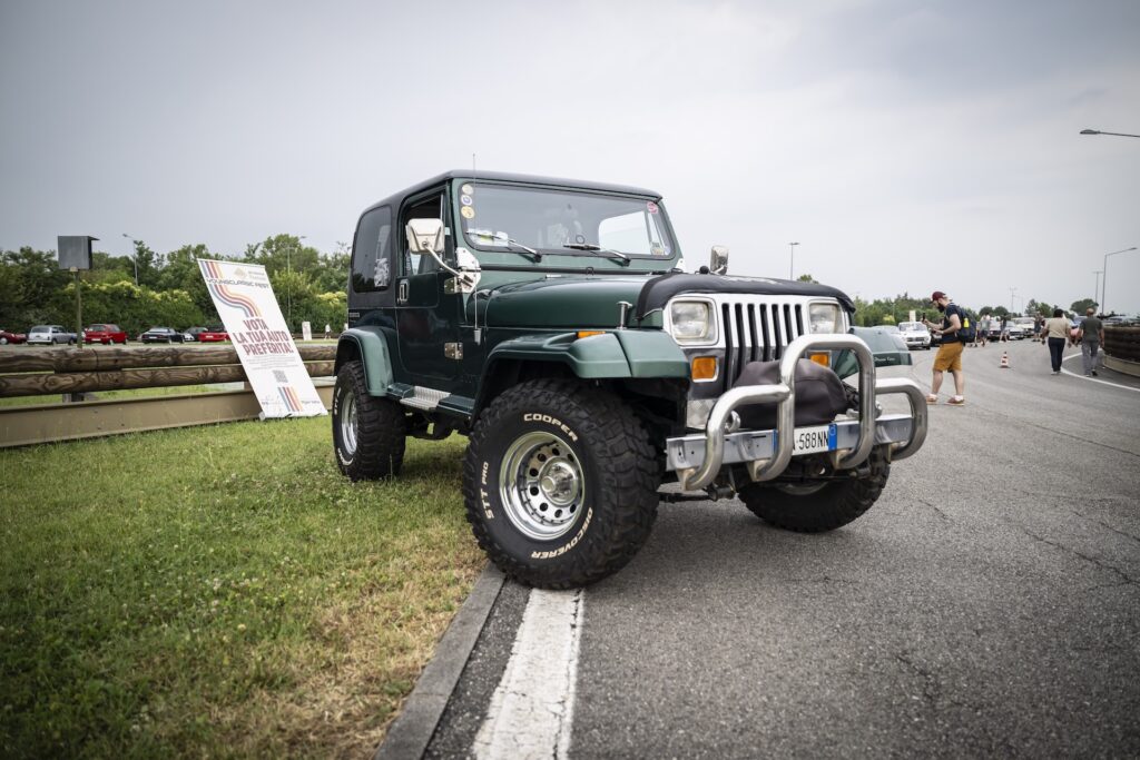 La Jeep Wrangler YJ del 1987 (numero 244) di Vincenzo Mazzone si è aggiudicata un riconoscimento che simboleggia l’iconico periodo dei paninari. Muscolosa e ignorante al punto giusto, con ruote XXL e le vistose protezioni che sottolineano la sua natura fuoristradistica.