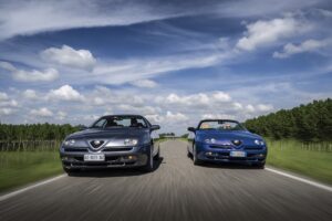 In copertina trovate l’ultima Alfa Romeo uscita dalla fabbrica di Arese. Si tratta del progetto 916, coupé e spider, realizzato sul pianale della Tipo 2, ma totalmente rivisto e dotato dello schema multilink a 5 bracci al posteriore. La coupé uscì nel 1995 fece impazzire gli alfisti più nostalgici per quella sigla GTV che riportava alla mente la sportività gloriosa del Biscione. La Spider la seguì subito dopo, colmando il vuoto lasciato dalla Duetto di quarta generazione. Si confrontano le due versioni di carrozzeria dotate dello stesso motore V6 due litri sovralimentato di derivazione “Busso”, il violino di Arese.