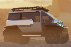 All’interno, al posto del volante, ci sono due joystick e un cruscotto digitale a tutta larghezza che incorpora la tecnologia della realtà aumentata. Equipaggiato con pneumatici airless con motori elettrici integrati e dotato di una vasta gamma di fotocamere e sensori, il Baby Lunar Cruiser è progettato per l’esplorazione.