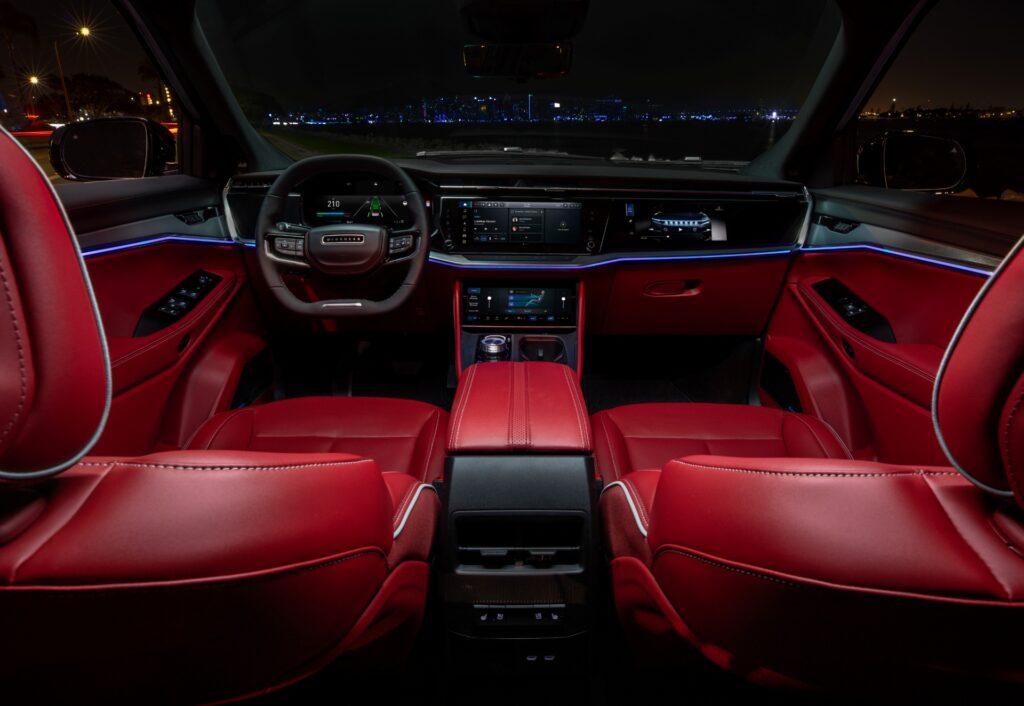 La Jeep Wagooner S, così come tutte le moderne ammiraglie, può contare su un interno tecnologico e curato nei dettagli. La vettura offre oltre 45 pollici di schermi ad alta definizione a disposizione di guidatore e passeggeri. Non può mancare un display di tipo touch da 10,25″ disponibile per il passeggero anteriore.