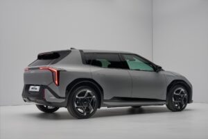 La larghezza in entrambe le configurazioni è di 1,86 metri, ed è enfatizzata dal muso basso e dalla calandra estesa definita da Kia Tiger Face. Altro elemento distintivo che accomuna tutte le Kia elettriche sono i fari a sviluppo verticale mentre al posteriore troviamo fari a led con disegno a L rovesciata che si contrappone alla caratteristica L creata dal montante posteriore verticale. I parafanghi pronunciati ospitano cerchi in lega di 19 pollici (versione GT) che accentuano il carattere dinamico dell’auto.