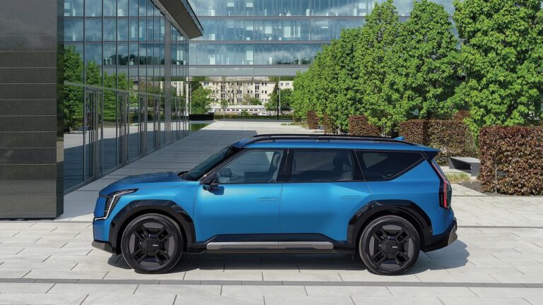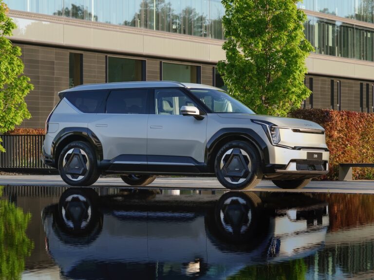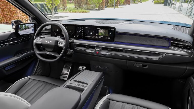 La piattaforma è a 800 V, come sulla EV6, e la batteria da 99,8 kWh è identica per le due versioni, accetta rifornimenti in corrente continua fino a 239 kW e questo, secondo la Kia, permetterebbe, in condizioni ottimali, di passare dal 10 all’80% di carica in 24 minuti. L’autonomia promessa arriva a 541 km nel caso della EV9 a motore singolo e a 497 km in quella con doppio motore.