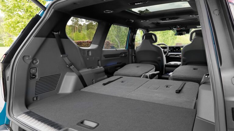 La Kia EV9, lo ricordiamo, ha dimensioni davvero importanti (posizionandosi all’estremo opposto della piccola e recentemente rinnovata Picanto): è lunga 5,01 metri e ha un passo addirittura di 3,10 metri. Questo le premette di offrire un abitacolo spaziosissimo che ospita trefile di sedili, con quella centrale che può ospitare due o tre passeggeri in base alle scelte dell’acquirente. E, a richiesta, per 1.000 euro, c’è il Lounge Pack che permette alle poltroncine della fila centrale di ruotare di 180° per ottenere un effetto più conviviale. In alternativa, sempre per 1.000 euro, è possibile ottenere il Relaxation Pack composto da sedili dotati anche di poggiapiedi e con maggiori possibilità di regolazione per ottenere in comfort ancora maggiore.