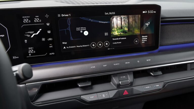 Naturalmente la dotazione tecnologica è allo stato dell’arte, a cominciare dal triplo display che domina la plancia. Ma la Kia EV9 ha anche la possibilità di aggiornare i suoi sistemi “over the air” attraverso la connessione web e i suoi ADAS la rendono già pronta per il Livello 3 di guida assistita, vale a dire per il pilota automatico in autostrada. Per ora, purtroppo, questa funzione è attiva solo in Germania, ma non appena la legislazione italiana lo permetterà, verrà sbloccata anche nel nostro Paese.