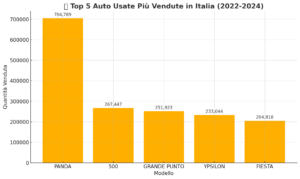 Il podio delle auto usate più vendute è tutto italiano, dominato da tre modelli Fiat: Panda in testa, seguita da 500 e Grande Punto.