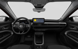 Gli interni prevedono sedili in tessuto nero, plancia nera, sedile guida regolabile a 6 vie e passeggero a 4, sedili posteriori abbattibili e bracciolo anteriore. La sicurezza è garantita da sensori di parcheggio posteriori, rilevatore di stanchezza, frenata automatica con riconoscimento di pedoni e ciclisti, e mantenimento della corsia.