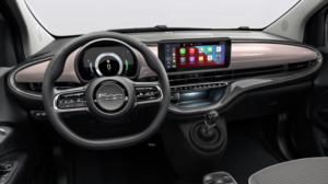 All’interno, la Fiat 500 hybrid ripropone l’abitacolo già visto sulla versione elettrica, con l’aggiunta della leva del cambio manuale a sei marce sul tunnel centrale. La qualità costruttiva è buona e il design è curato, con un’impostazione fortemente nostalgica. Tuttavia, la 500 resta una due porte, e questo penalizza l’accesso ai sedili posteriori. La versione 3+1, con la piccola porta posteriore controvento sul lato destro, non è al momento disponibile e arriverà solo dal prossimo anno.