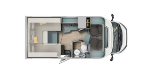 Poter disporre potenzialmente di una coppia di letti gemelli non è cosa da poco in uno spazio così ridotto. Una soluzione possibile grazie alla presenza di una dinette semicircolare che si trova sulla sinistra una volta saliti a bordo di Laika L 105. Sopra di essa la prima coppia di letti, ovviamente basculanti. Sono a movimentazione elettrica, e hanno ampie dimensioni anche nel formato “singolo” (lunghezza fino a 205 cm) . Ma possono essere uniti e, grazie alla rete a doghe scorrevole e all’utilizzo di un cuscino aggiuntivo, creare un maxi matrimoniale da ben 205/190×200 cm da poter sfruttare in entrambi i sensi.