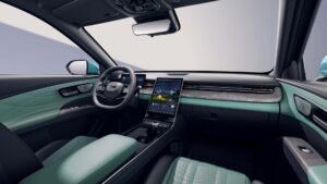 L’abitacolo punta su tecnologia e comfort. Spicca il grande display verticale da oltre 13 pollici al centro della plancia, affiancato dal quadro strumenti digitale dietro al volante multifunzione. Le superfici sono rifinite con materiali soft-touch e inserti lucidi che vogliono richiamare l’atmosfera premium.