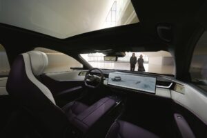 Davanti al guidatore al posto del tradizionale cruscotto con la strumentazione digitale troviamo un head-up display. L’illuminazione ambiente offre 256 colori mentre l’impianto audio conta 23 altoparlanti e un amplificatore da 1.280 watt.