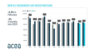 Anche febbraio non sorride al mercato dell’auto europeo. Secondo i dati diffusi da ACEA (si considerano qui i dati riferiti al mercato dell’Unione Europea), le immatricolazioni nel secondo mese dell’anno sono calate del 3,4%, in peggioramento rispetto al -2,6% fatto segnare a gennaio. Il bilancio dei primi due mesi dell’anno si attesta quindi a -3% rispetto al 2024, con l’automotive europeo che fatica a riprendere quota. Nello specifico la domanda è ancora rallentata nei maggiori mercati come Italia (-6%), Germania (-4,6%) e Francia (-3,3%), mentre la Spagna resta in territorio positivo (+8,4%).