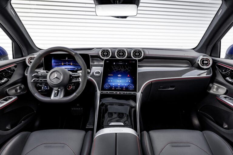 Le nuove Mercedes-AMG GLC mettono sul piatto le motorizzazioni che hanno debuttato proprio sulla sorella più “bassa”, la Classe C. La base di partenza è un quattro cilindri sovralimentato di due litri di cilindrata che, a seconda della versione, presenta specifiche differenti. Sulla 43 l’assistenza elettrificata deriva dalla presenza di un sistema di tipo mild-hybrid. Quanto basta per assicurare 422 cv (310 kW) di potenza massima a 6.750 giri e 500 Nm di coppia a 5.000 giri. Numeri che vengono gestiti da una trasmissione a trazione integrale, corredata da un cambio automatico a nove velocità. Il passaggio da 0 a 100 km/h avviene in 4,8 secondi.