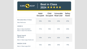 Nel 2024, Mercedes-Benz, Mazda e Zeekr hanno guidato la classifica dei test Euro NCAP grazie a risultati straordinari nei rispettivi segmenti. In particolare è la Mercedes-Benz E-Class ad aver conquistato il titolo di auto più sicura dell’anno, mentre Mazda CX-80 e Zeekr X si sono distinte tra le suv.