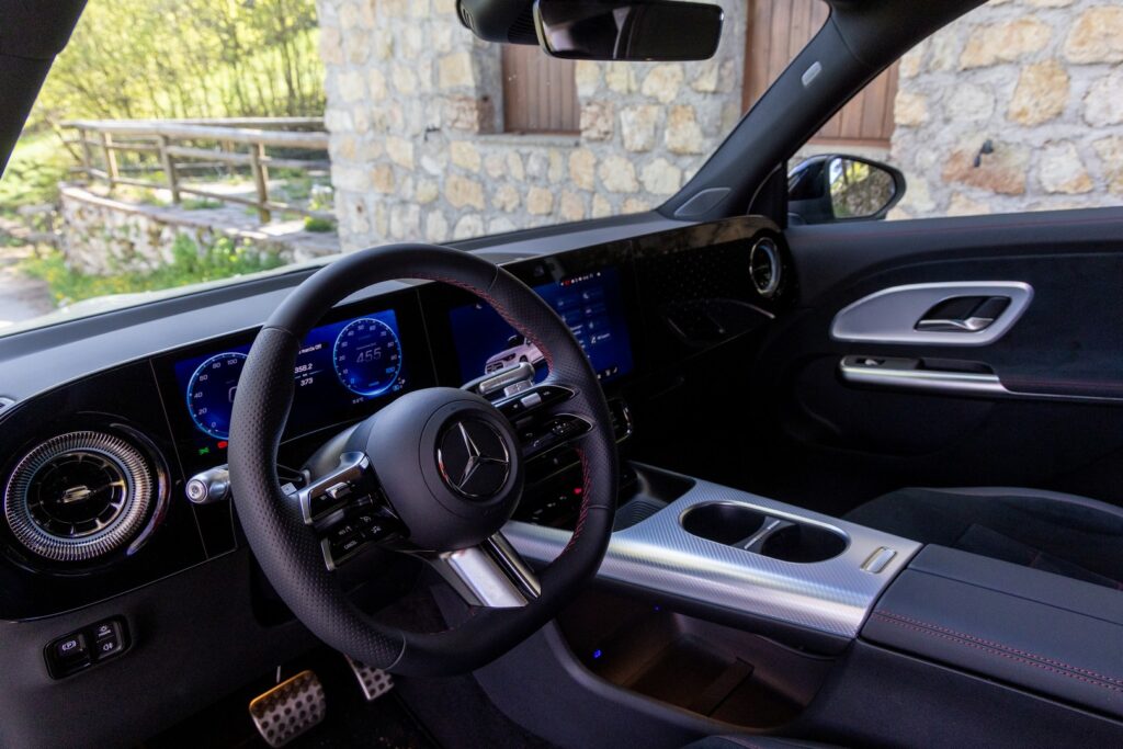 Non del tutto positive, al contrario, le sensazioni legate al sistema di recupero dell’energia. Le modalità disponibili sono tre: a volte si sente la mancanza di una quarta per il grande divario tra quella intermedia e la “one pedal” vera e propria. Una sensazione particolarmente avvertibile nei primi centimetri di rilascio: bisogna sollevare il piede con grande cautela per evitare decelerazioni troppo forti già dai primi metri. Certo, puoi sempre metterlo nella modalità di mezzo, ma a quel punto perdi una parte dell’efficienza per cui la GLB si distingue.