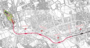 Accanto alle stazioni nasceranno tre nuovi giardini pubblici – da 2.500 mq, 8.700 mq e oltre 1,5 ettari – con aree gioco, spazi attrezzati, rastrelliere coperte per biciclette e dune verdi per mitigare il rumore.