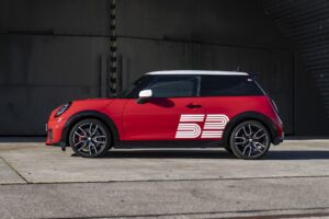 L’allestimento si distingue per la carrozzeria in Chili Red con una stripe bianca che attraversa cofano, tetto e parte posteriore. Sui lati spicca il numero “52”, lo stesso della Cooper S vincitrice a Monte Carlo.
