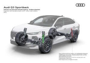 Come per la sorella Q3 anche la gamma motori della Sportback è completa: si parte con il 1.5 TFSI mild-hybrid da 150 cv, si passa al 2.0 TDI da 150 cv e al 2.0 TFSI disponibile con 204 o 265 cv, fino ad arrivare alla variante plug-in e-hybrid da 272 cv, capace di coprire lo 0-100 km/h in 6,8 secondi e di percorrere, dichiara Audi, fino a 118 km in elettrico. La batteria da 25,7 kWh supporta ricariche rapide in DC fino a 50 kW.