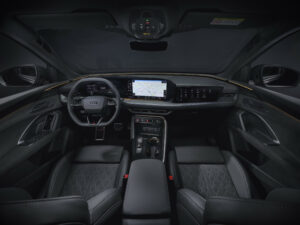 La nuova Audi Q5 è ancora più tecnologica anche all’interno. La plancia è un cinema, totalmente ricoperta da display: al centro domina un display curvo integra il quadro strumenti digitale da 11,9 pollici e il display MMI per l’infotainment da 14,5 pollici; poi è disponibile anche uno schermo da 10,9 pollici per il passeggero. Il sistema di infotainment, basato su Android Automotive OS, offre accesso ad app come YouTube, e tutte le funzioni del sistema HVAC sono gestite tramite schermo.