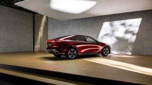 Mazda6e nasce dalla ultraventennale collaborazione della Casa nipponica con la cinese Changan e verrà prodotta a Najing sulla stessa piattaforma della Deepal SL03, con la quale condivide alcune componenti (tra cui lo schermo per il sistema multimediale di 14,6 pollici e il quadro strumenti digitale di 10,2 pollici), mixando poi la classica dinamica di guida e il DNA complessivo di Mazda con le funzionalità all’avanguardia dei powertrain elettrici di Changan.