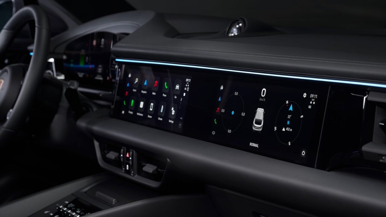 Un dragster, a misura di famiglia però: il bagagliaio ha una capacità di 540 litri, come quello di una station wagon media per capirci, a cui si aggiungono gli 84 litri del vano anteriore. Nell’abitacolo si colgono tocchi di stile tipicamente Porsche ma si respira tutta la modernità dei tre schermi, anzi quattro. Uno davanti agli occhi del guidatore. Uno centrale, il più grande. Un altro, optional, per il passeggero. E poi quello virtuale, l’head up display che proietta frecce in realtà aumentata e offre un’immagine che corrisponde a quella di un display, pensate, di 87 pollici. Il sistema operativo di bordo è, a mio parere, uno dei migliori oggi disponibili: Android Automotive.