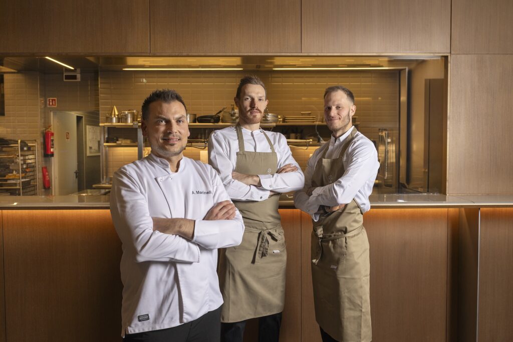 Accanto allo chef lavora una brigata solida e coesa, con professionisti che hanno contribuito alla crescita del ristorante fin dai primi mesi di apertura. Tra questi, i sous chef Alessandro Rigamonti e Nicolò Sironi, il maître Giovanni Di Luggo e la sommelier Ilaria Bignotti, punti di riferimento rispettivamente in cucina e in sala. Marinelli («Questa stella non è un punto di arrivo, semmai un nuovo punto di partenza» ha detto a Parma) può servirsi dei prodotti delle grandi serre che ospitano piante aromatiche e spezie.