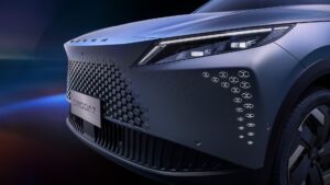 Il frontale adotta la caratteristica calandra a trama esagonale del brand cinese che domina l’intera superficie anteriore, oltre a gruppi ottici dalle forme affilate. Definite le nervature di cofano e paraurti, anche al posteriore, dove la Omoda 7 si distingue per fanali dall’originale grafica interna.