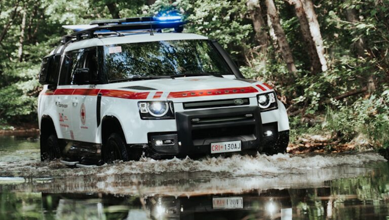 Land Rover presenta la speciale Defender 130 Outbound per le emergenze idrogeologiche e con tecnologia di connessione che la trasformerà in una stazione satellitare mobile all'avanguardia