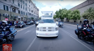 Si è svolto ieri a Roma il corteo funebre che ha accompagnato Papa Francesco nel suo ultimo viaggio terreno. Dopo la messa solenne celebrata nella Basilica di San Pietro, la salma è stata trasportata fino alla Basilica di Santa Maria Maggiore a bordo di un Dodge Ram 1500 ‘Classic’. Una scelta insolita per un corteo papale, ma perfettamente in linea con lo stile sobrio e vicino al popolo che ha caratterizzato tutto il pontificato di Jorge Mario Bergoglio.