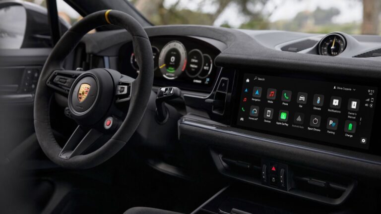 Visto i numeri in gioco, tutto quanto concerne l’assetto è stato accuratamente calibrato. Al momento non c’è un dato ufficiale sulla massa, ma il modello uscente supera ampiamente quota 2,5 tonnellate. Ecco perché sono d’obbligo le sospensioni pneumatiche (che sono più basse di 10 mm) e che sono state riprogettate: sono del tipo a due camere e due valvole. La tecnologia consente al veicolo di regolare separatamente le impostazioni di compressione ed estensione. Porsche afferma che ciò permetterà una modalità Comfort più morbida e una modalità Sport Plus più rigida. Il Porsche Torque Vectoring Plus è di serie, mentre il Porsche Dynamic Chassis Control e l’asse posteriore sterzante sono disponibili come optional, ma vivamente consigliati data la massa in gioco. Visto che quando si tratta di performance, questa Turbo E-Hybrid passa da 0 a 100 km/h in 3,7 secondi e spunta una velocità massima di 295 km/h.