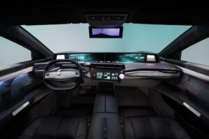 Malgrado i 4,8 metri di lunghezza (2,9 di passo) e 1,52 di altezza, il cx è di appena 0,25 perché l’aerodinamica è stato un parametro fondamentale del progetto. Dentro l’abitacolo, oltre a materiali anche particolari – tipo i rivestimenti in pelle realizzati con le fibre di ananas – ci sono uno schermo ricurvo OpenR che occupa l’intera plancia con una dimensione di 120 centimetri di lunghezza e 12 di altezza in risoluzione 8K e una diagonale di 48”, sedili posteriori inediti, un sistema audio immersivo, maniglie delle porte (-60% di peso) riprogettate e più leggere e molto altro.