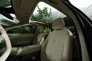Il design resta fedele al concept. Minimalismo stilistico caratterizzato da superfici pulite, sbalzi corti, cofano basso, coda tronca e tetto filante. I fari a doppia lama e la SmartZone integrano radar e sensori senza sacrificare l’estetica. I dettagli neri lungo la fiancata congiuntamente alla forma del tetto, tipica di una coupé, slanciano la visione laterale, mentre il tetto panoramico da oltre 2 metri quadrati inonda l’abitacolo di luce. Il Cx della versione Dual Motor è di 0,24.