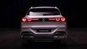Lunga 4,84 m e caratterizzata da un passo di ben 2,97 m, la GLC elettrica è più grande di 12 centimetri nella prima misura e di 8 nell’interasse. La vettura colpisce per il cofano lungo e il frontale molto verticale. E poi ci sono gli stilemi: qui compaiono per la prima volta la griglia che caratterizzerà tutte le elettriche di alta gamma dei prossimi anni, con i suoi 942 punti luminosi (e le animazioni relative) e un posteriore audace, attraversato da una fascia in nero lucido che racchiude i quattro gruppi ottici a forma di stella, riecheggianti in qualche modo la formulazione della recente AMG GT XX.